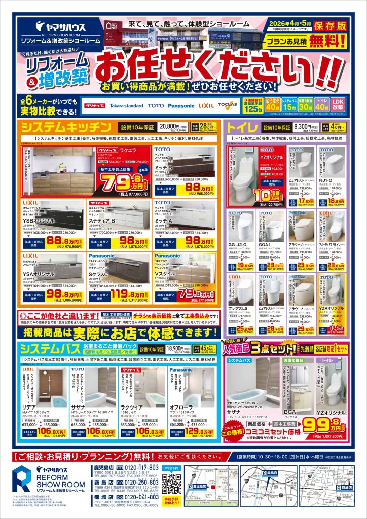リフォーム鹿児島市・霧島市 ・都城市|ヤマサリフォーム&増改築ショールーム最新チラシです!